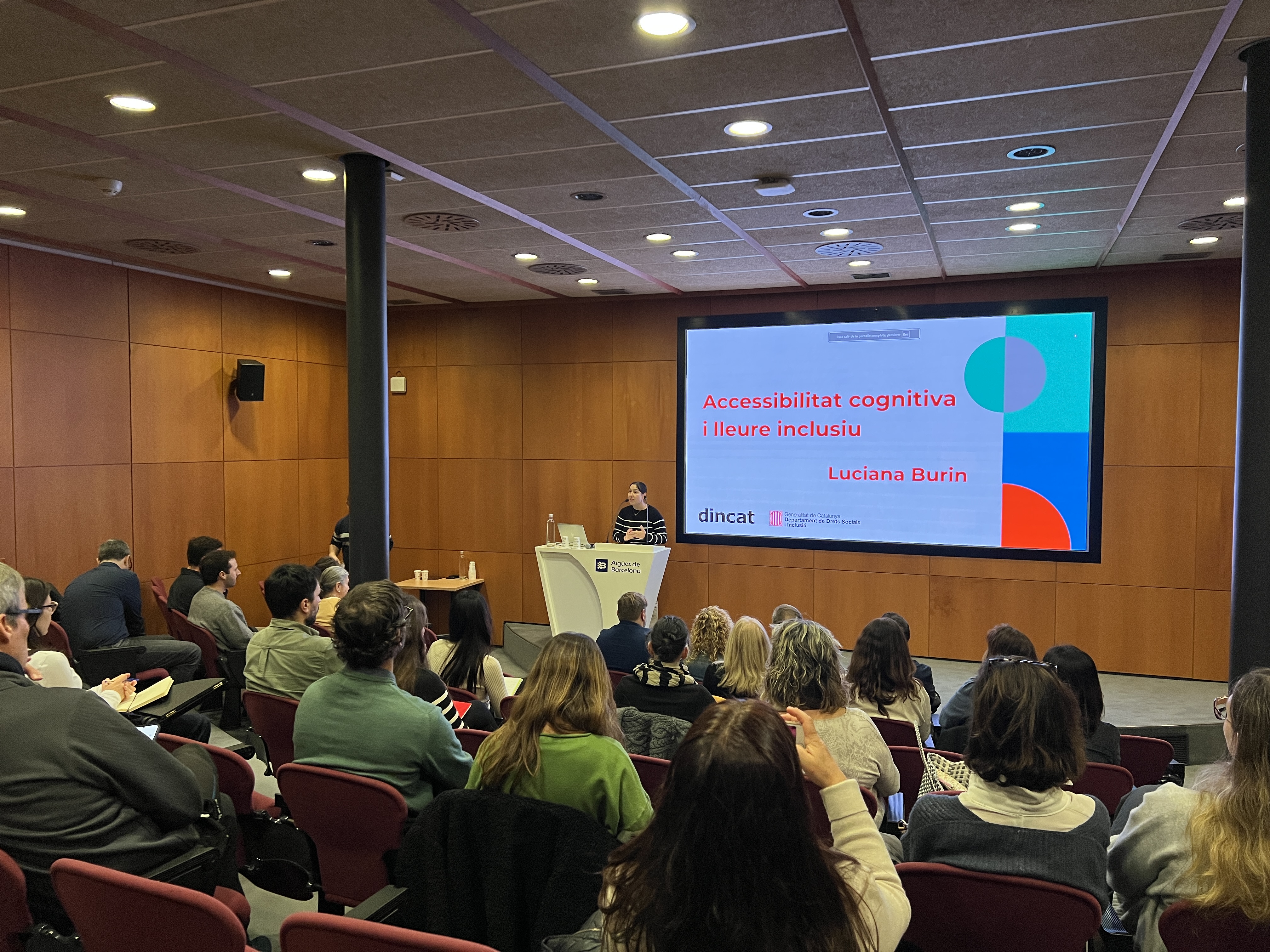 Luciana Burin de Dincat – Plena Inclusió Catalunya ha fet una presentació sobre l'accessibilitat, el lleure inclusiu i l'atenció a les persones amb discapacitat intel·lectual. Entre d'altres ha destacat l’accessibilitat cognitiva i la importància de generar entorns segurs i acollidors. A més ha aportat exemples pràctics de com millorar l’accessibilitat en recursos turístics, d’oci i culturals per a persones amb discapacitat intel·lectual posant èmfasi en la lectura fàcil, la senyalística dels espais i els webs accessibles.