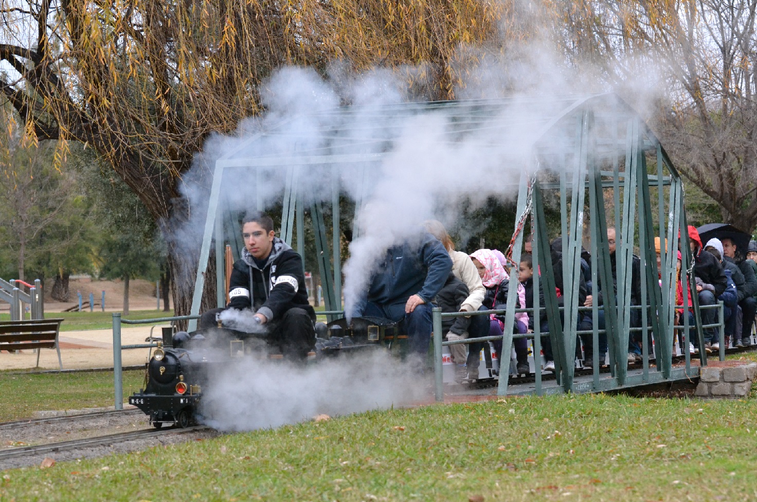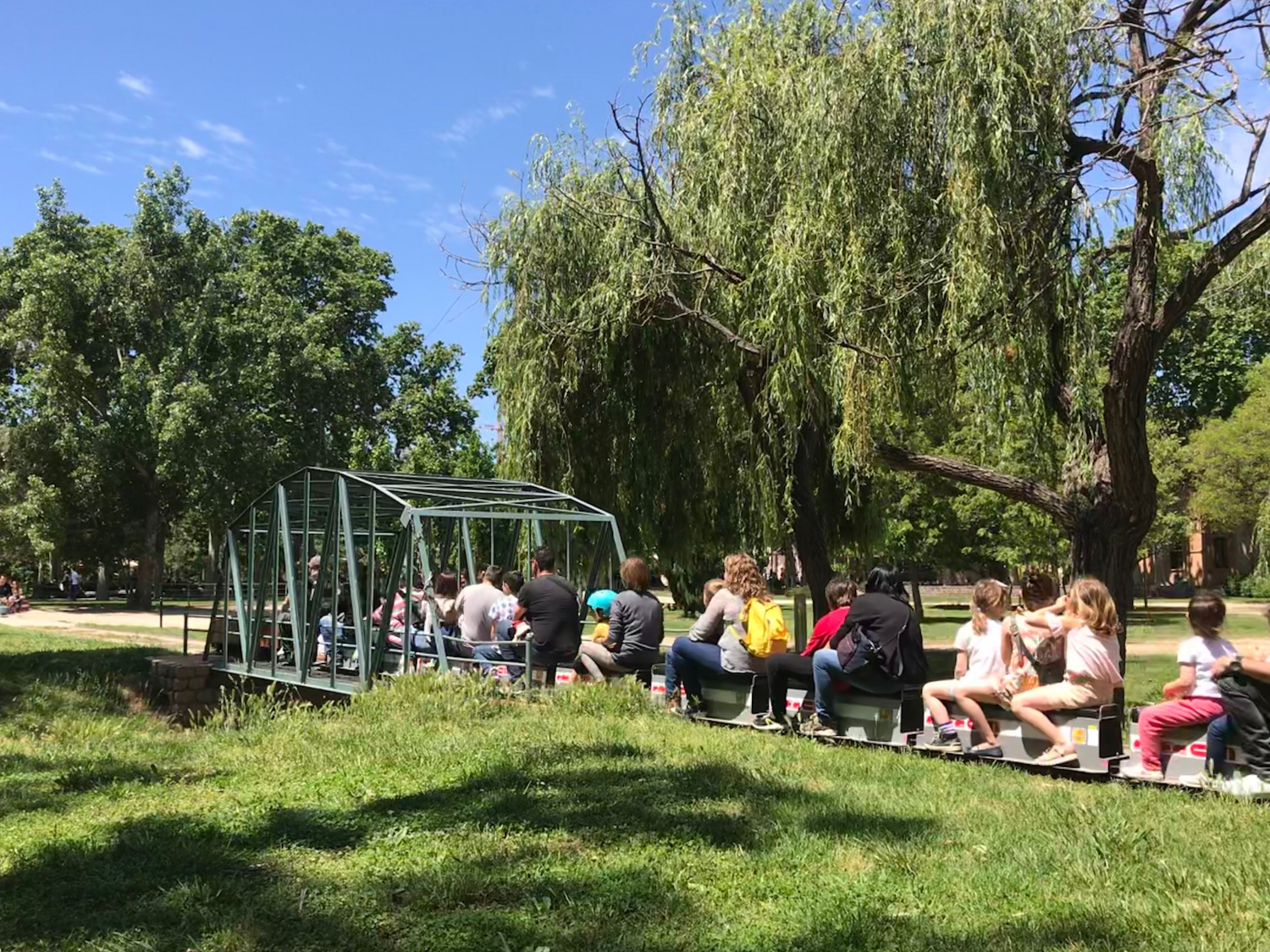 Els dies festius milers de persones es passegen al llarg de l’esplèndida zona verda que predomina en el parc i molts d’ells aprofiten l’ocasió per viatjar en el tren que recorre 834 metres per la part baixa del parc i on passa per ponts i túnels.