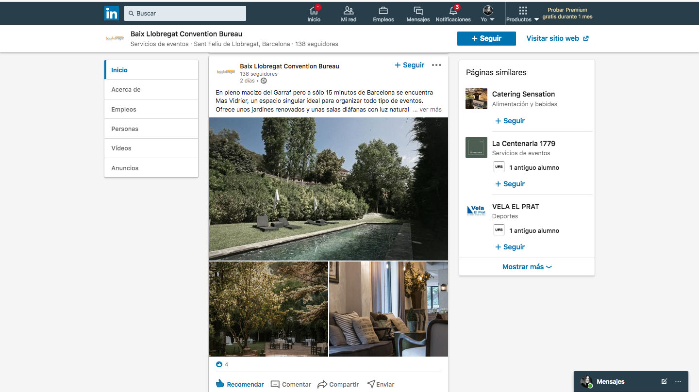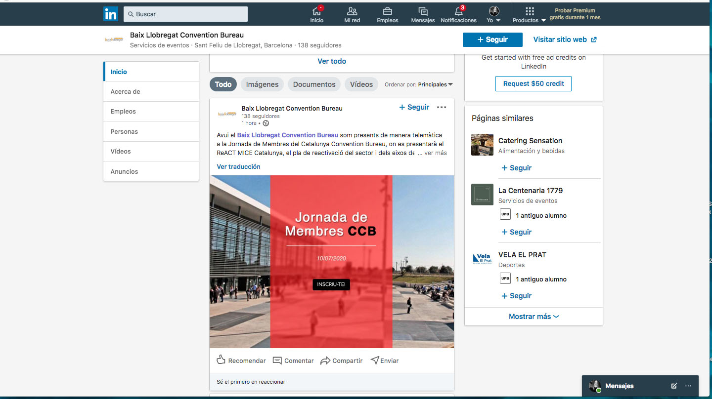 Amb la fi de donar més visibilitat a l’oferta MICE del Baix Llobregat Convention Bureau, ens posem en marxa a Linkedin, una de les millors eines comercials per captar, optimitzar i fidelitzar agències d’events, així com el sector corporatiu i associatiu.