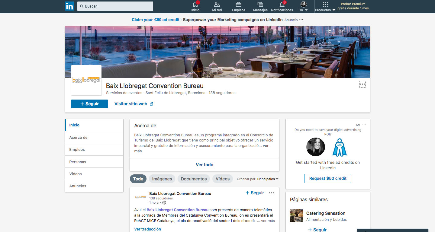 El Convention Bureau del Consorci de Turisme del Baix s’estrena a Linkedin