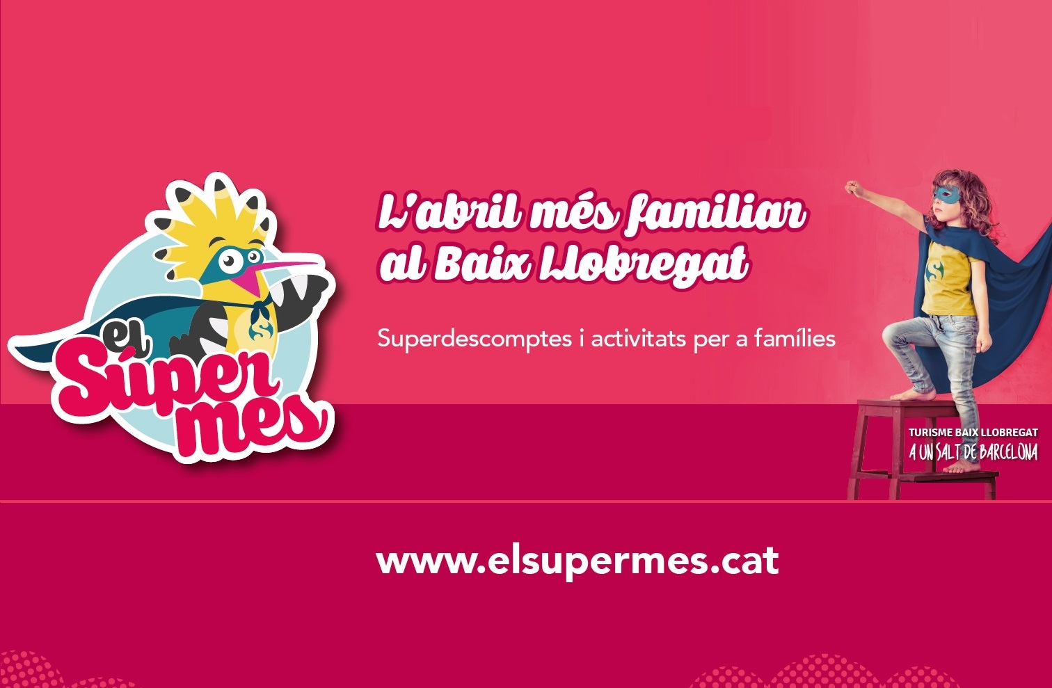 El Consorci de Turisme del Baix Llobregat iniciem l'organització de la campanya de promoció turística EL SUPERMES, l'abril més familiar al Baix Llobregat! Es tracta de la segona edició d'una acció de promoció que l'any 2016 va esdevenir un èxit, durant els 5 caps de setmana d'abril es van promocionar més de 150 activitats del Baix Llobregat, el web va rebre més de 30.000 visites, i més de 5.000 famílies van descarregar les promocions.