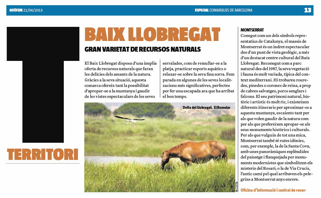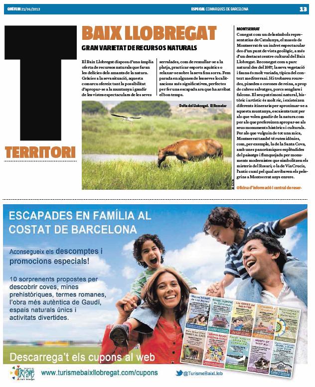 El reportatge es va publicar el divendres 21 de juny de 2013 on destaca l'amplia oferta natural i cultural del Baix Llobregat per gaudir en família.