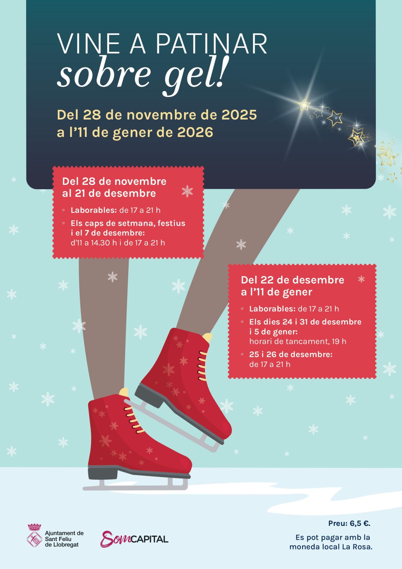 Vine a patinar sobre gel! Del 28 de novembre de 2025 a l'11 de gener de 2026.