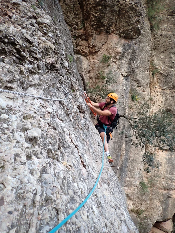 Se trata de una vía ferrata de nivel medio-experto, situada en el Parque Natural de Montserrat (cerca del Restaurante Vinya Nova). Daremos pasos atléticos y desplomados de gran altura, y en la parte final disfrutaremos de una impresionante chimenea. ¡Que nos pondrá a prueba que seguro que no nos dejara indiferentes!